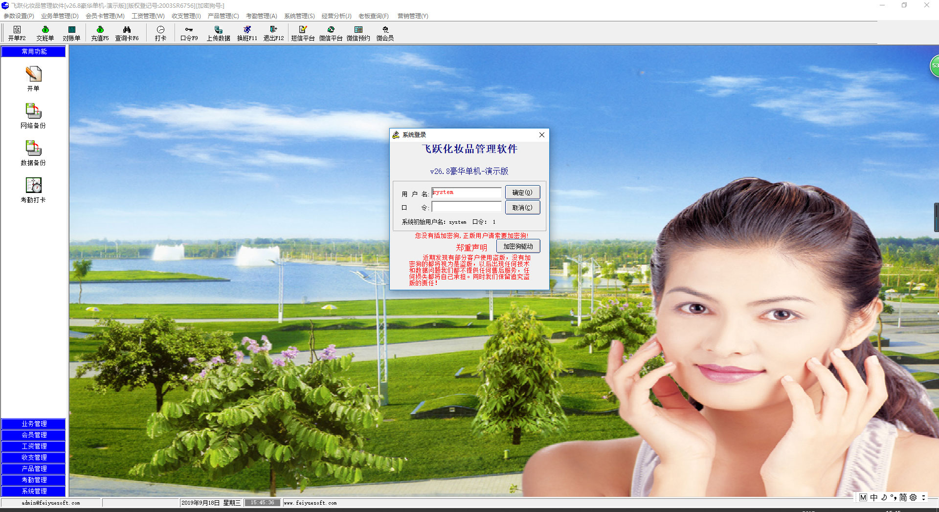 飞跃化妆品管理软件是一套专门为化妆品店设计的集现金业务管理、会员卡消费、产品销售、会员管理、短信平台、员工管理、工资管理、收支管理、仓库管理、考勤管理等功能的综合性管理系统。系统集合了全国大量大中型化妆品店的先进管理方法,同时结合中国化妆品店网在会员卡管理方面的经验,让您轻松解决化妆品店在业务管理、质量跟踪、员工考核、业绩分析等一系列问题,迅速提高化妆品店经营管理水平、稳固客户群,增加经济效益,是一套以较小的投资获得双盈的优质管理软件。