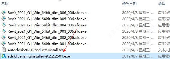 1、下载全部文件后得到autodesk revit 2021中文原程序和autodesk revit 2021注册机和破解补丁文件,首先运行"Revit_2021_G1_Win_64bit_dlm_001_006.sfx.exe"开始安装原程序;
