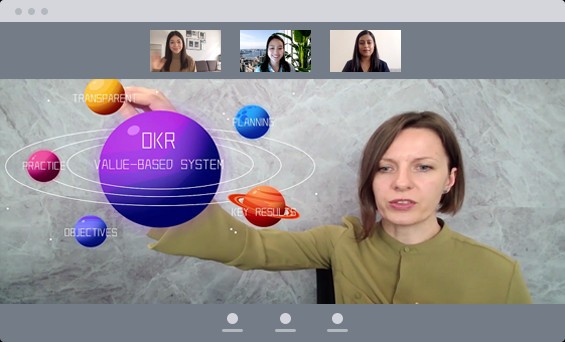 来画视频为新手用户预设了适用于不同演示场景的视频模板,即点即用,无需后期,同时还支持智能人像抠图、自定义虚拟背景、一键导入PPT等多种功能,进一步满足线上教学、视频会议、企业宣传等场景需求。