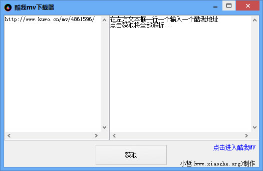 小哲酷我MV下载器是针对酷我推出一款下载工具。使用该软件,你可以直接调用播放器播放这个真实地址的MV,节约了流量。你也可以直接复制地址,甩到迅雷里就能下载了。