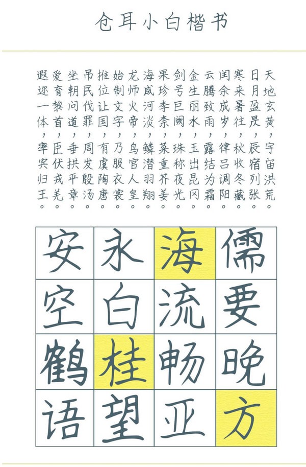 仓耳小白楷书字体看起来非常漂亮和独特。同时,是根据传统楷体的特点,用硬笔制作而成的。字体大胆大方,笔触自然流畅,结构清晰易读,全面支持中、英、阿拉伯数字,可很好地用于文字和信息展示、网页设计、印章雕刻、数据创作、装饰设计、计算机艺术设计、视觉设计、字帖等应用场景。