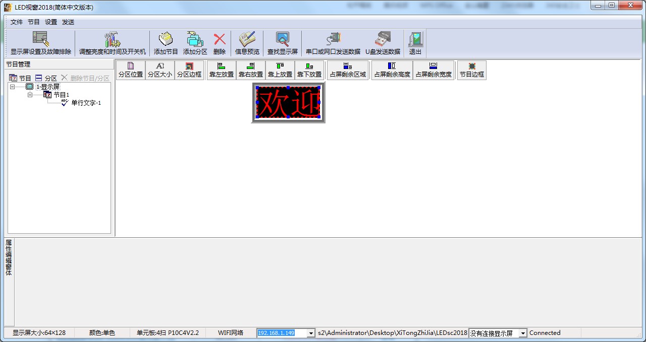 LED视窗2018是一款简单易用的LED控制卡配套软件,支持强力1688芯片,支持单双色单元板,最多可以支持三万字信息,支持强力1688芯片和单双色单元板,支持文本,表格图形,数字时钟,模拟数字混合时钟,动画,支持200级的亮度调节。
