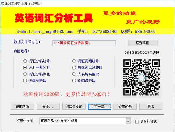 英语词汇分析工具最新版一款英语词汇分析工具,提供自动词汇识别、统计等词汇数据的采集,屏幕显示/生成数据文件,为用户开展词汇数据分析提供帮助。该软件包共计含有25个工具,涵盖数据采集、语料库应用、数据分析、语句/词汇搜索、资料整理、词汇分级标色显示等等。是英语词汇研究的工具软件。
