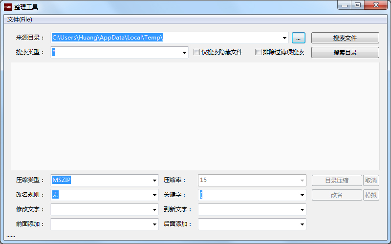 PMC文件整理工具是一款绿色实用的文件整理工具,PMC文件整理工具是您的好帮手,软件提供搜索文件、搜索目录、搜索隐藏文件、排除过滤项搜索等多项功能,有需要的朋友快来下载试试吧!