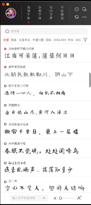 3、内置多种草书、楷书的字体,你还能够搜索到一些趣味性的字体。