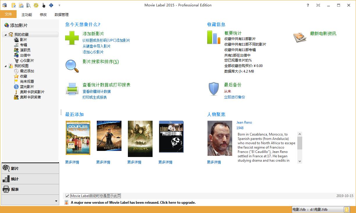Movie Label是一款界面清爽、功能全面的电影收藏软件,对于操作方便小白用户也能够灵活运用!并且用户还能够利用它来建立起一个非常详细的影片资料页面,能够将它关联到你的本地视频中,更好的对此进行收藏!并且,该软件还能够填写的标签有专辑名、版本、媒体类型、序号、光盘数、影片宣传语、制片商、影片语言、发行日期、上映日期、预告片、官网、预算、影片长度、国家(地区)、IMDb评分、剧情简介、演职员表、奖项、技术数据、花絮等详细的信息,正确填写的话以后搜索起来很方便。