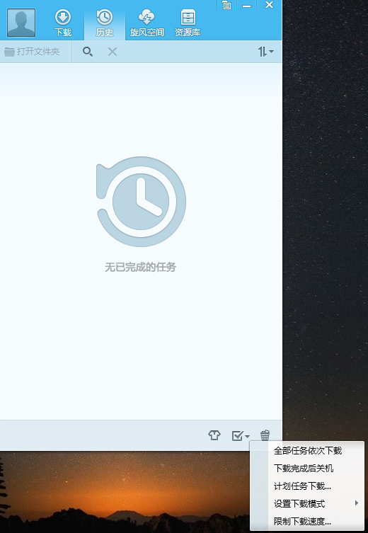 1、打开QQ旋风,点击右下角的更多按钮,选择【限制下载速度】;