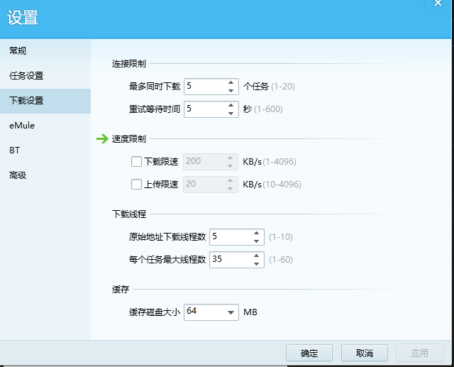 2、在打开的设置页面中,可以进行下载设置,设置完毕点击【确定】即可。
