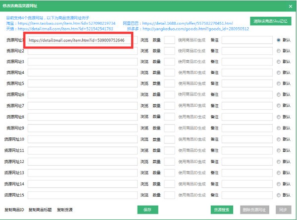 3、 如果软件识别到了货源,会自动跳转到采购界面,请直接查看第4步,没有识别到的请手动保存货源网址(货源网址是商品网址)。