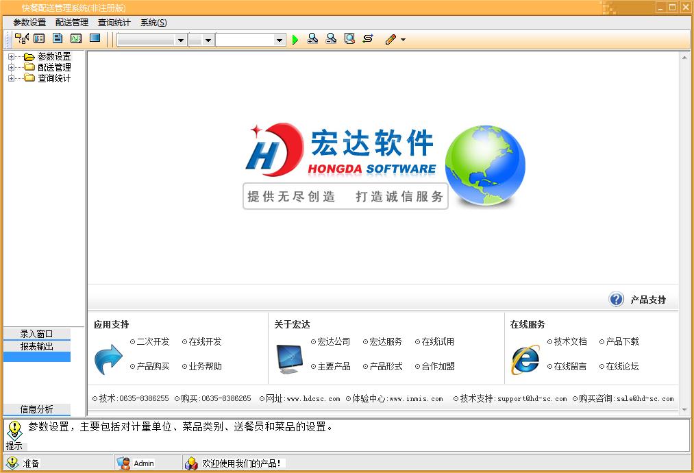 宏达快餐配送管理系统是一款简单便捷的快餐配送管理软件,集数据查询、统计、报表输出、信息交互等功能于一体,是企业实现高效率管理的得力助手,拥有订餐登记、客户订餐信息、到期客户、在送客户、当前需送餐客户等功能。