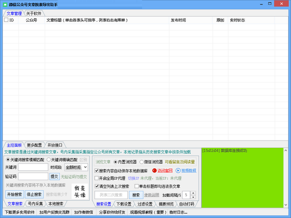 微信公众号文章搜索导出助手是一款能够帮助用户采集微信公众号文章的工具。用户可以使用该工具搜索到服务号、订阅号的文章数据,所有爬取的微信文章自动保存本地数据库,采集过一次就会有数据存在,无需重复采集,支持pdf、word、txt、excle和html5种类型进行文章导出。