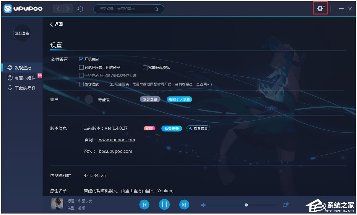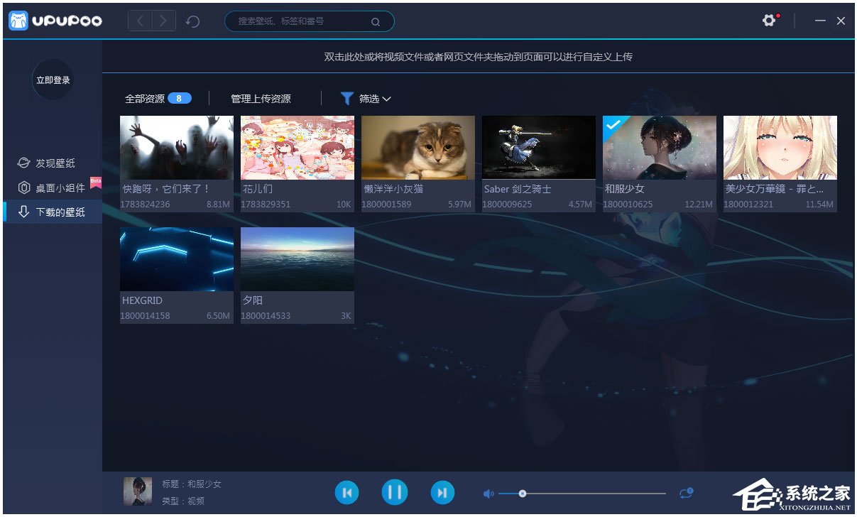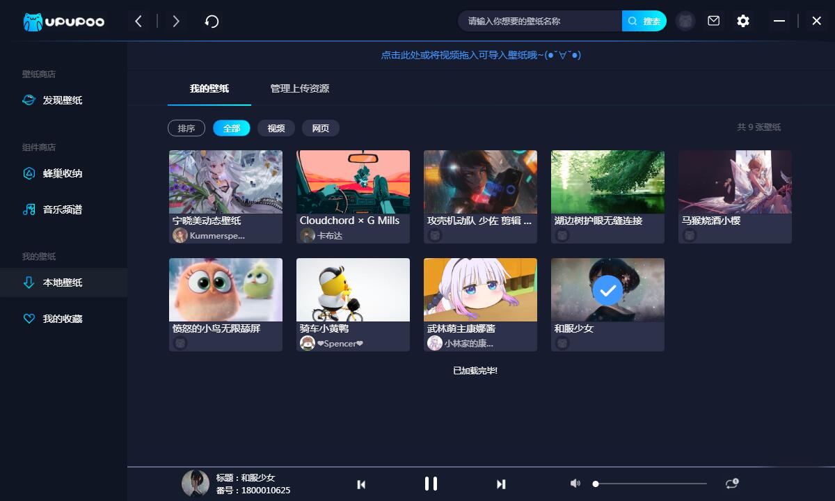 UPUPOO是一款功能非常强大的桌面壁纸软件,它为广大用户提供了大量的精美壁纸来让大家选择下载,支持将动态视频制作成电脑桌面动态壁纸,也支持对您的原壁纸进行快速的管理等。UPUPOO动态桌面能够帮助用户将桌面壁纸设置为动态的视频桌面,收集了动漫、舞蹈、神曲、风景等大量的视频壁纸资源,能够非常轻松的就将桌面设置为视频状态,丰富的资源吗,让你想换什么就换什么。