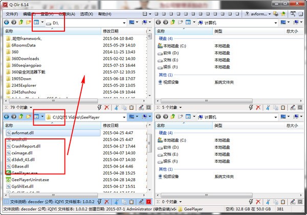 打开Q-dir出现的四个窗口,不同盘中在同一个窗口访问多个文件夹针,对文件加中的内容进行复制、粘贴、修改、移动等操作。