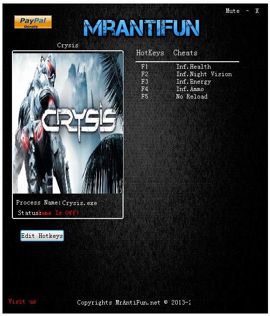 孤岛危机1修改器是该款同名游戏——《孤岛危机1》所推出的作弊器。这款孤岛危机1修改器可进行无限生命、无限能量、无限弹药等5项操作辅助,让你更轻松玩游戏!
