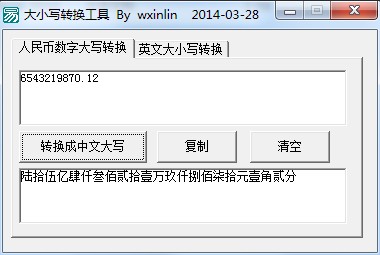 大小写转换器是款实现数字之间转换大写的工具。可以把人民币数字转换成大写形式,使用方法,只需输入数字一键转换即可。还可以实现人民币数字大写转换、英文大小写转换、可以实现单词、段落、语句及文章的英文大小写转换,还能将大写字母全部转换成小写字母。