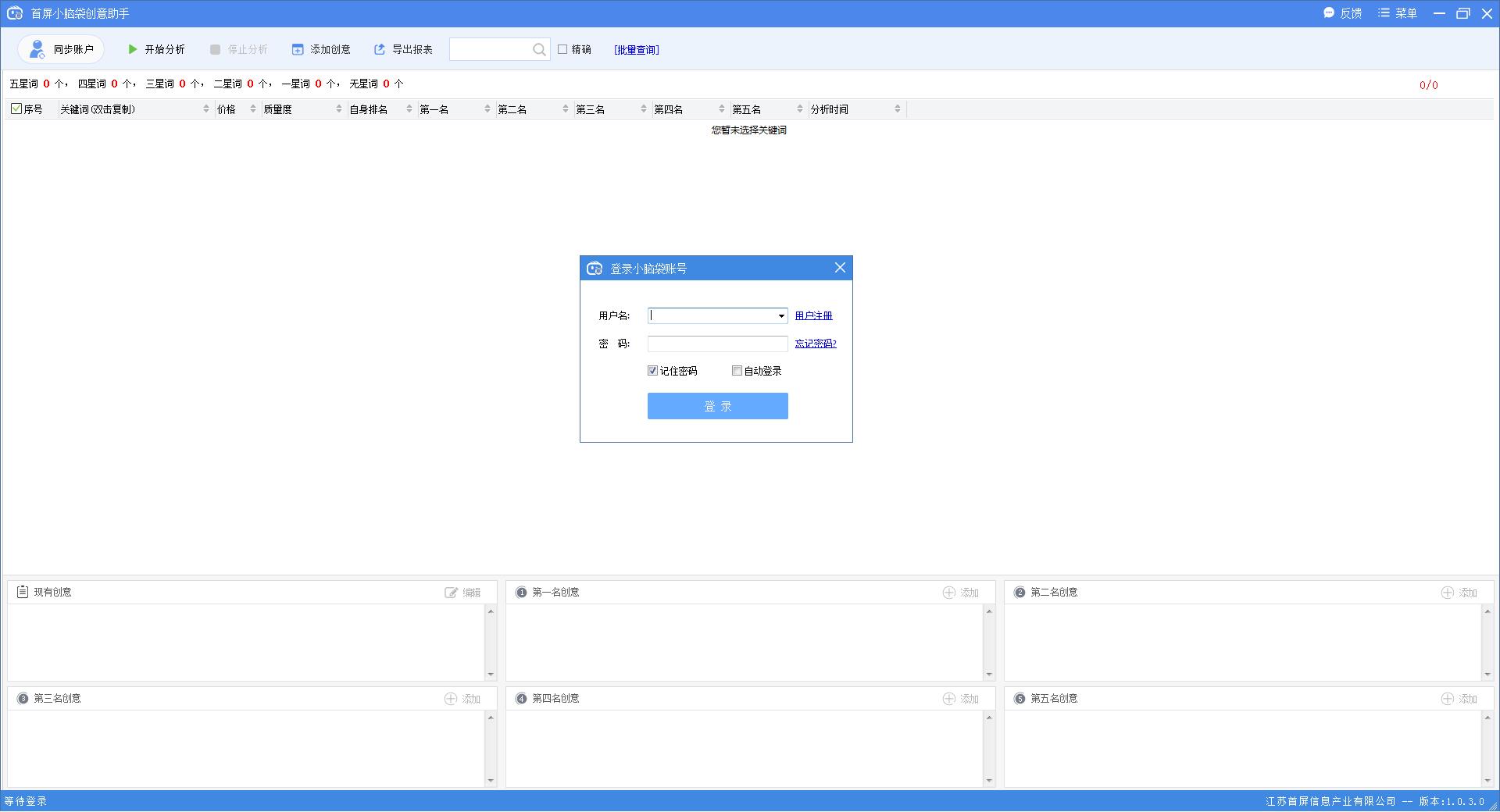 首屏小脑袋创意助手是一款专为竞价创意制作的创意文案编辑工具。为用户提供海量的关键词收集竞价创意文案,并且用户还可以根据自己的需要来编辑竞价创意文案,让用户轻松提出满意的竞价文案,需要的用户赶快来下载使用这款软件吧!