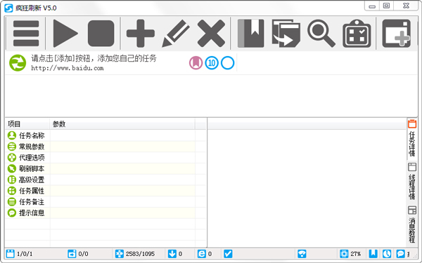 疯狂刷新是一款基于HTTP协议的多线程网页自动刷新软件,您可以用它来增加网站流量、提升帖子/空间/博客的点击率,以及更多的基于HTTP协议所能完成的事,灵活的使用可以起到很好的网络推广效果。