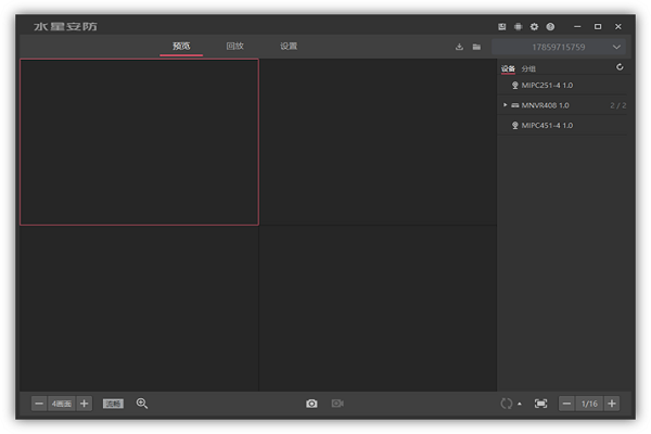 在客户端的预览界面,【设备】或【分组】中选择需要观看的IPC,即可观看远程实时监控画面了。