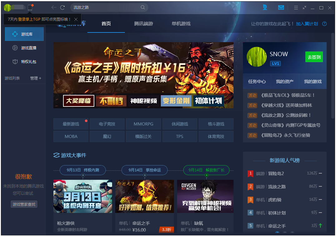 使用TGP参加每日签到活动,完成TGP客户端内的任务即可获得TGP经验值。当经验值达到一定的数量后,即可升级。