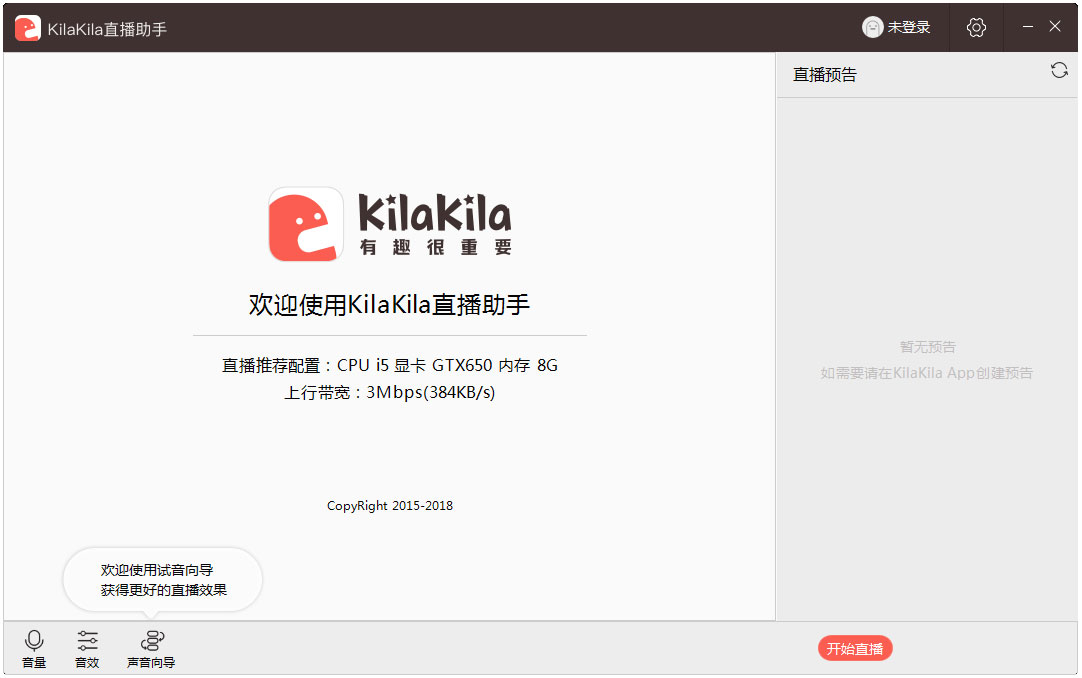 启动KilaKila直播助手后,在右上角登录,即可开始直播。