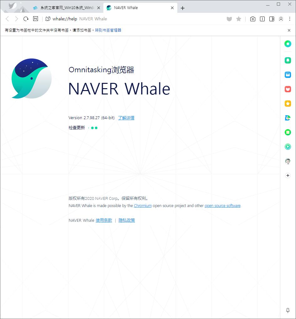 Whale浏览器是款帮助用户们查看网页的双屏浏览器。最大的特色就是支持双屏浏览,在不同屏幕上浏览不同的网页内容,甚至还能同时搜索、阅读两种不同语言的网站内容。还提供书签设置功能,可以为当前的浏览页面设置访问书签。