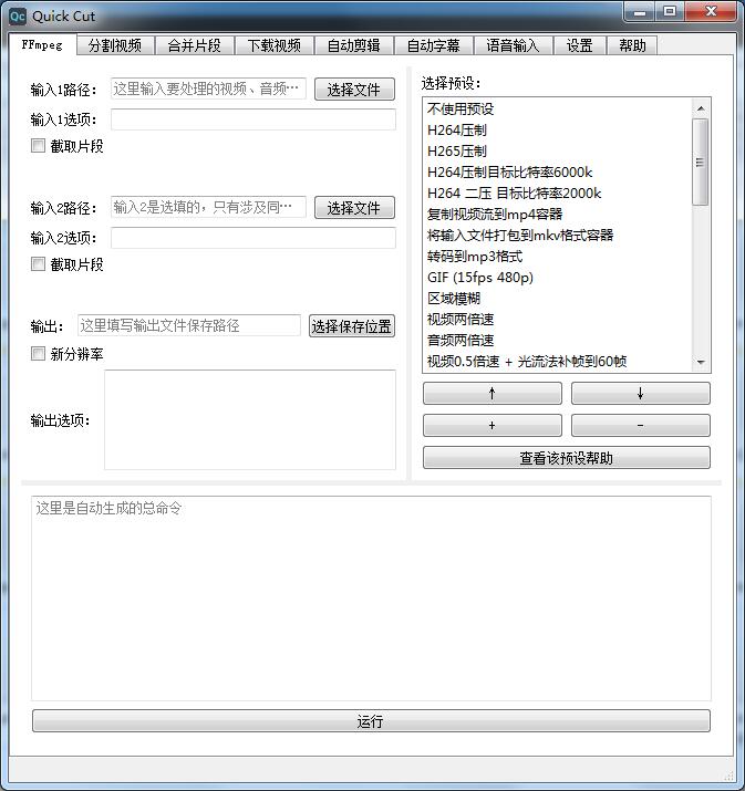 Quick Cut是一款简单好用的视频处理软件,帮助用户处理压缩和合并视频内容,相较于一般高达几百兆的软件而言它在体积上面更加的小巧,在功能上面更加的广泛一些,并且是由于开发者独立开发并且完全的开源,所以也无需用户付费就能够轻松的进行使用,算是较为友好的视频内容处理软件。