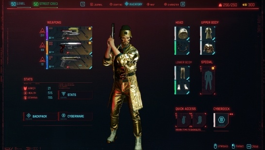 赛博朋克2077这款游戏相当火爆,系统之家小编给大家带来赛博朋克2077所有金色服装和武器存档,这个存档拥有所有金色衣服和武器以及所有武士外套,让玩家拥有全套金色的装备,更加酷炫,让你玩游戏体验感更加好,有兴趣的玩家欢迎下载!