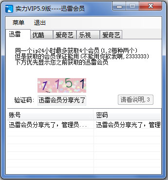 实力VIP会员获取工具是一款非常实用的VIP会员快速获取软件。通过这款实力VIP会员获取工具,就能帮助用户快速获取迅雷、优酷、爱奇艺、乐视的会员账号,让你拥有VIP特权,简单实用,欢迎下载!