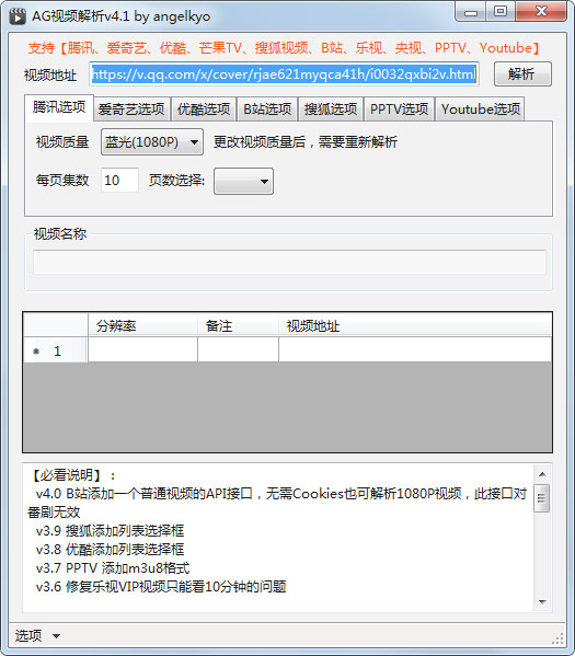 AG视频解析是一款功能强大的全网视频下载软件,通过AG视频解析用户能下载到诸如爱奇艺、腾讯、PPTV、B站等全网几乎所有视频站的VIP视频,软件长期更新,虽然经常会出现用不了的情况,但是很快就能够继续下载和播放了,有需要的可以下载使用。