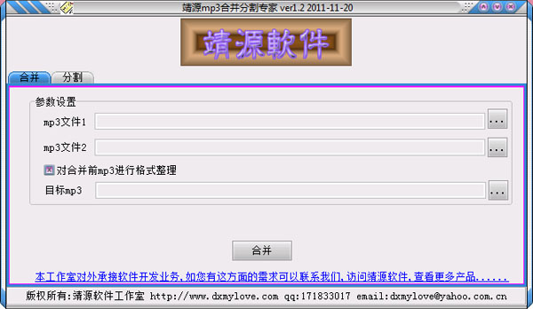 靖源MP3合并专家是一款易于使用、功能强大的免费MP3合并工具!支持对合并mp3进行整理,合并后mp3文件后半部分不能正常播放的情况。