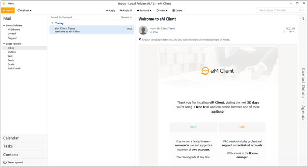 em client是一个windows平台下的免费邮件客户端,用于发送和接收电子邮件,管理日历,联系人和任务电子邮件客户端,欢迎大家下载使用。