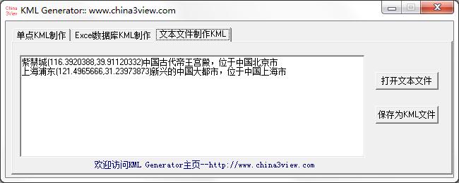 Kml Generator是一款功能强大的格式转换工具,软件可以将经纬度转换为谷歌地球的KML格式,操作起来也是十分的简单,可以制作单点KML,从EXCEL数据库文件制作KML文件,从文本文件制作KML文件,是一款用于将经纬度转换为谷歌地球KML格式的KML转换器。