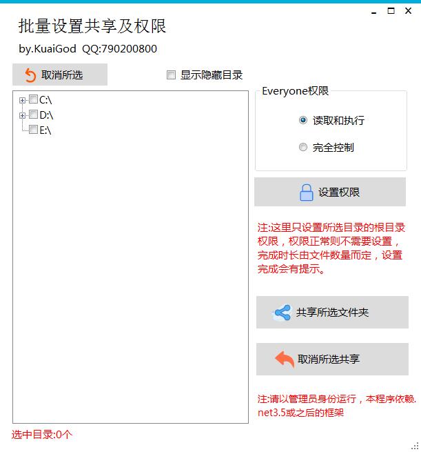 3.一键设置目录所在磁盘的Everyone权限(共享访问需要有相应的权限)。