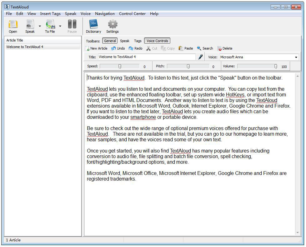 TextAloud MP3 是一款专业强势的录音、音频播放、音频制作工具,目前并不支持中文字的发声。平常是常驻在Windows系统列中,随时等待使用者利用TextAloud MP3来读取Email、Webpage或其它文件中的文字。