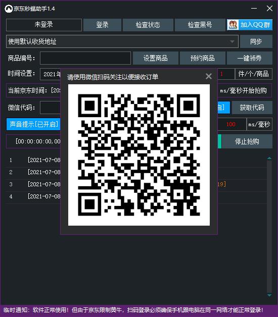 2、本程序支持京东所有商品模式自动判定,自动下单,捡漏。