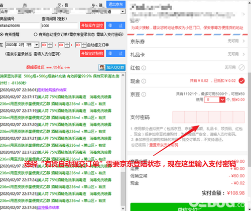 四、根据商品的抢购时间进行设置,如果使用红包、记得提前输入支付密码。(必须设置,因为现在到点自动刷新页面了)
