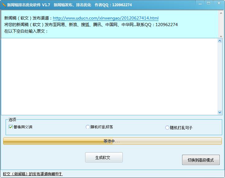 新闻稿排名优化软件是一款专门用于新闻关键词优化的软件。用户使用新闻稿排名优化软件最新版可以快速找出新闻稿中合理的软件词,并且新闻稿发布之后在网站中的排名也会迅速提升,界面简洁。操作也非常简单,用户可以快速上手,可以放心使用。
