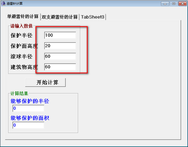 1、输入单避雷针的基础数值;