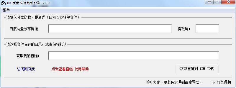 BDD度盘高速地址获取工具可免登陆获取百度网盘高速下载地址,配合IDM即可高速下载。
