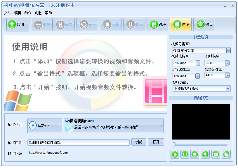 枫叶AVI视频转换器是一款功能强大、操作简单的AVI视频格式转换工具,它您可以帮助您将网上下载的各种流行的视频格式转换为AVI,DivX,XviD,H.264,MJpeg等视频格式。
