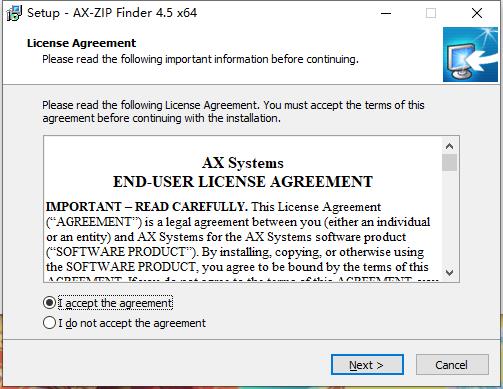 安装向导默认设置的软件默认安装路径为C:Program FilesAX SystemsAX-ZIP Finder;