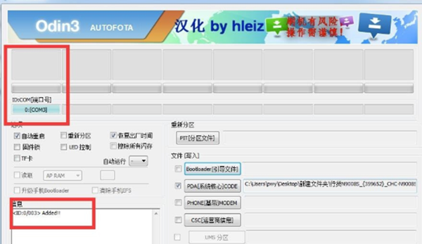 2、使用USB数据线连接odin3刷机软件,接下来电脑会提示发现新硬件并自动安装驱动。如果驱动安装失败或ODIN没有显示请检查三星驱动是否安装,数据线与接口是否完好。