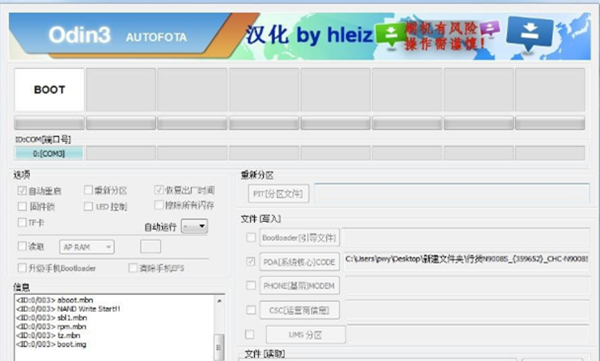 4、确保odin3自动重启 和 恢复出厂时间 勾选 一切准备就绪,点击开始吧。