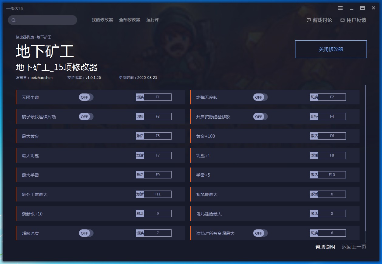 矿坑之下十五项修改器是最近非常多的主播都在玩的一款roguelike地牢探索类型的游戏,打怪、升级并且进行探索,这老三样的东西在这款游戏当中焕发了新的活力,虽然这款游戏在难度上面不是非常的大,不过如果你想要快速的完成相关的内容的话,还是非常推荐这款矿坑之下十五项修改器!