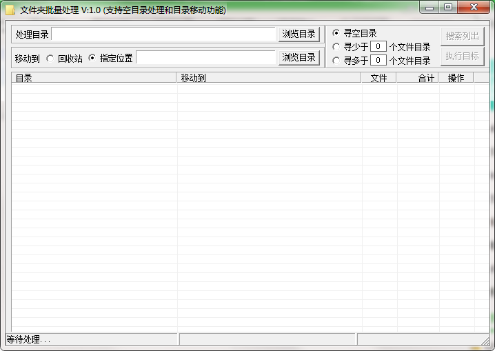 文件夹批量处理是一款可以对空目录进行精确搜寻并处理的工具,还具有移动目录功能,问价目录快速、简单、精准,是文件夹处理的得力助手,还支持查询统计功能强大,让您操作简便、提高工作效率,用户可以放心使用。