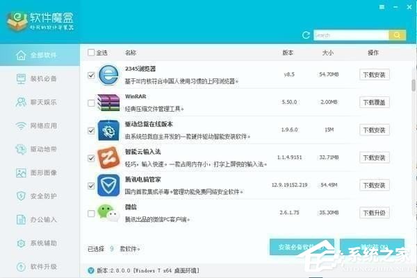 软件魔盒是一款方便用户获取软件、定制离线安装包、直接在线安装的便捷软件,软件魔盒拥有丰富的电脑软件资源,包括装机必备、聊天娱乐、网络应用、驱动地带、图形图像等分类,并且支持软件一键下载、软件升级等功能,它可以轻松帮你在刚重装完毕的电脑上安装常用软件,而且还支持软件自定义定制,有需要的不要错过。