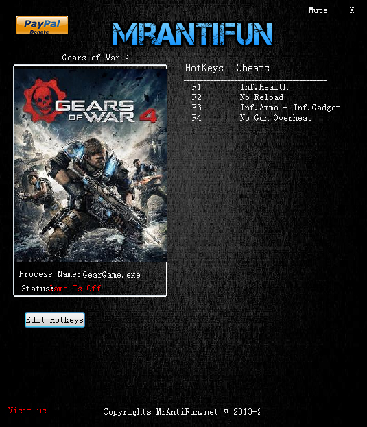 战争机器4五项修改器v9.5.0.2下载解压缩,运行游戏,开启游戏修改器即可。