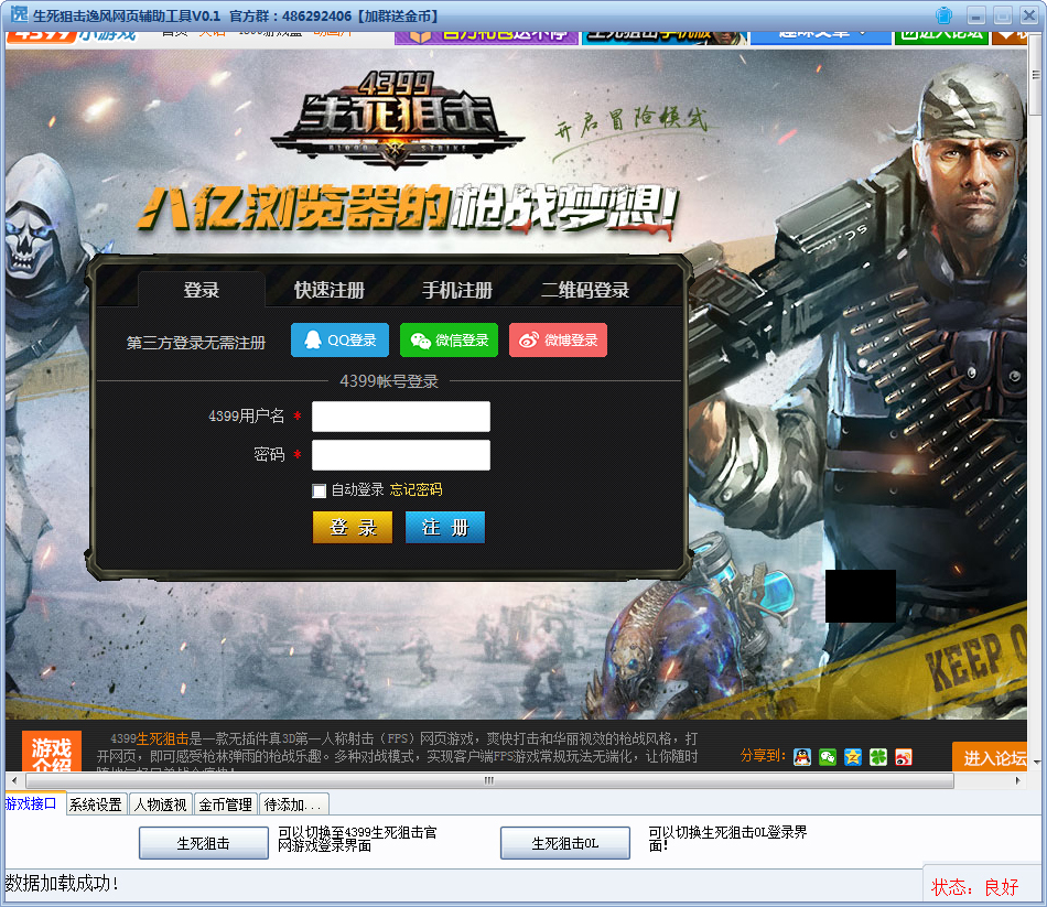 是一款功能强大的生死狙击辅助软件,该生死狙击辅助软件主要是帮助用户更友好的体验游戏,因此有需要的朋友赶紧下载吧!