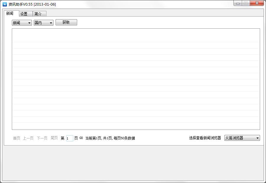资讯助手是一款方便浏览各种主流类型新闻资讯的工具,可选择浏览的新闻类型,可自定义设置浏览的网站,软件还支持选择查看新闻浏览器并且国内新闻或者国外新闻然后点获取即可。