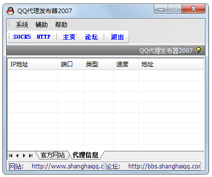 QQ代理发布器操作简单,绿色软件,无须安装,没有插件,支持SOCK5/HTTP代理,能查阅最新IP的地址位置。 在QQ代理发布器2007上能找到最新最快速的全球代理IP。